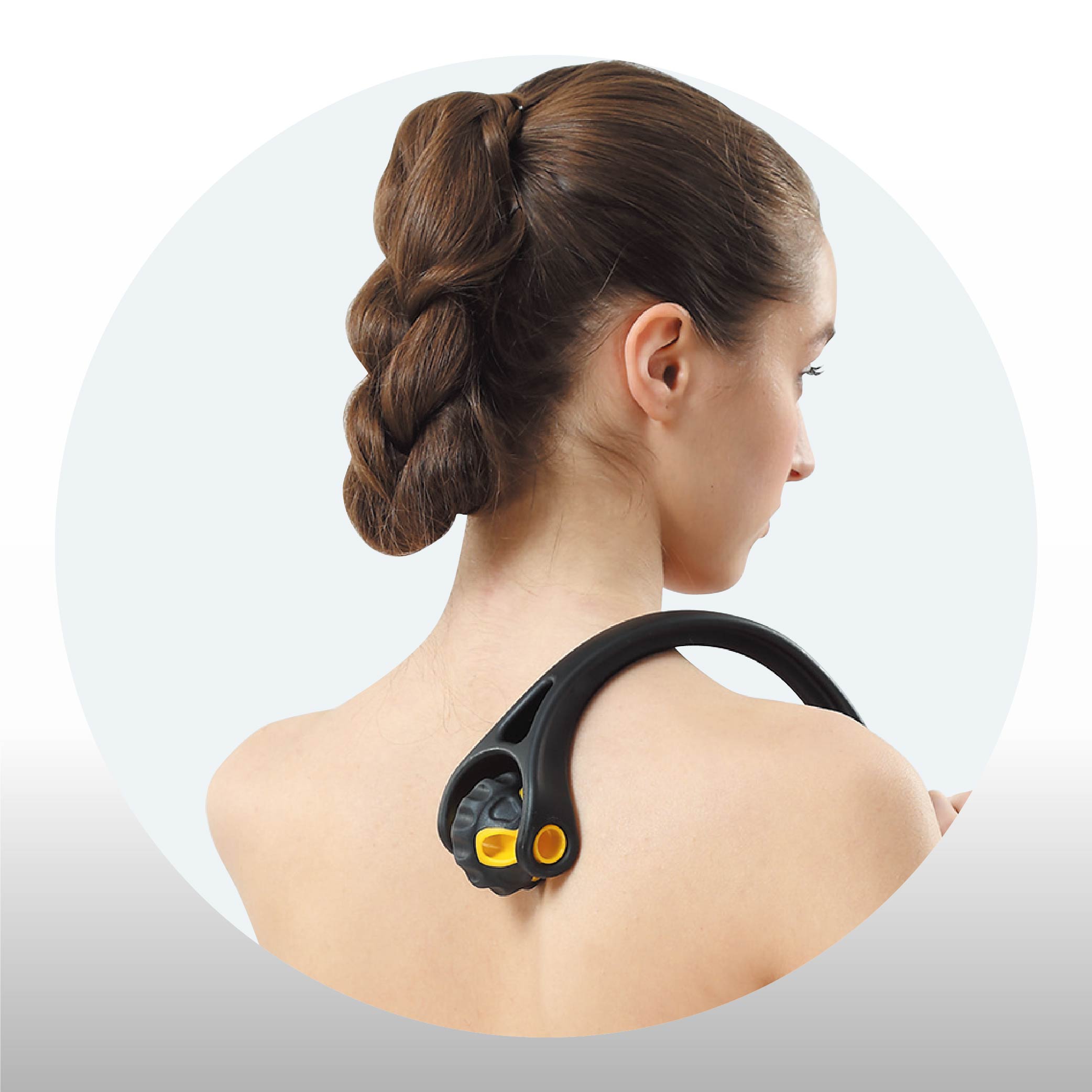The ball on the front conveniently massage your upper back, shoulders,